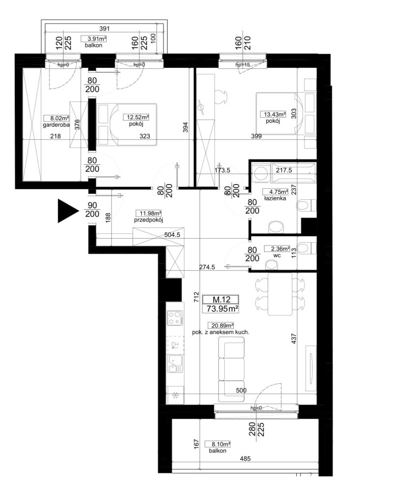 POKOI: 3 PIĘTRO: 1 BALKON: 3,91m2