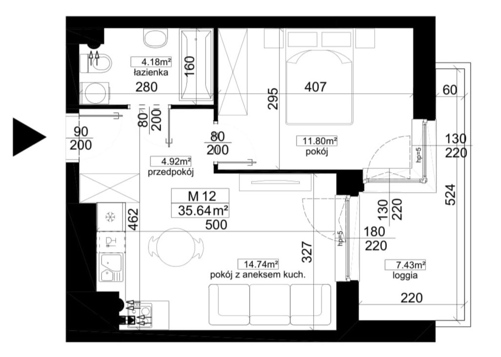POKOI: 2 PIĘTRO: 1 LOGGIA: 6,99m2