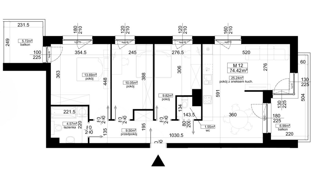 POKOI: 3 PIĘTRO: 2 BALKON: 4,55m2