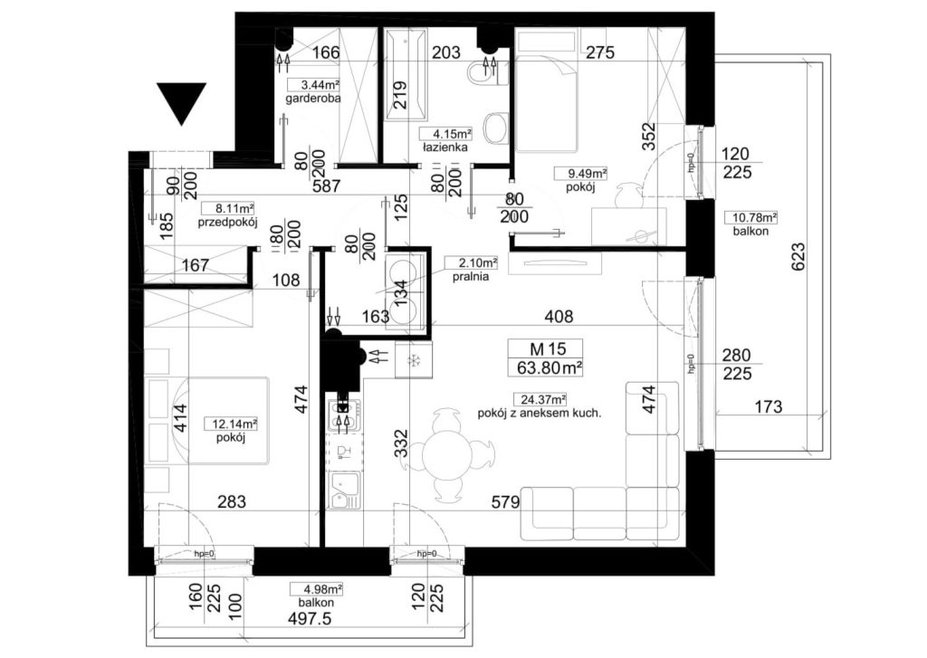 Pokój z aneksem kuchennym