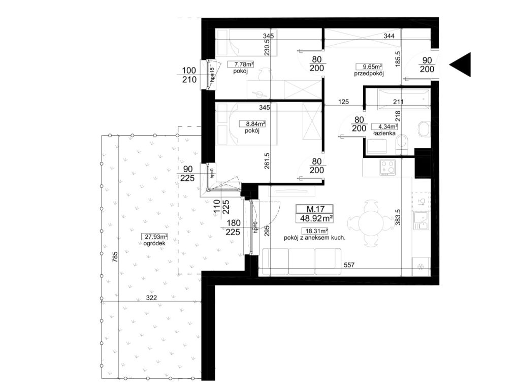Pokój z aneksem kuchennym