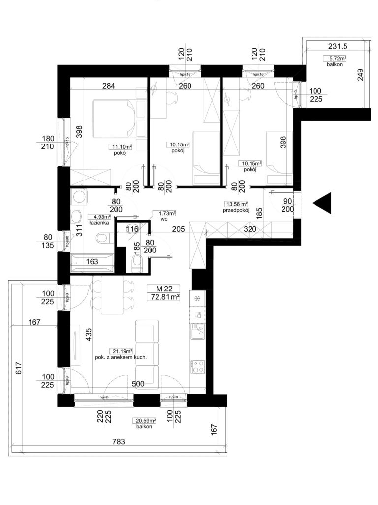 POKOI: 4 PIĘTRO: 1 BALKON: 19,81m2