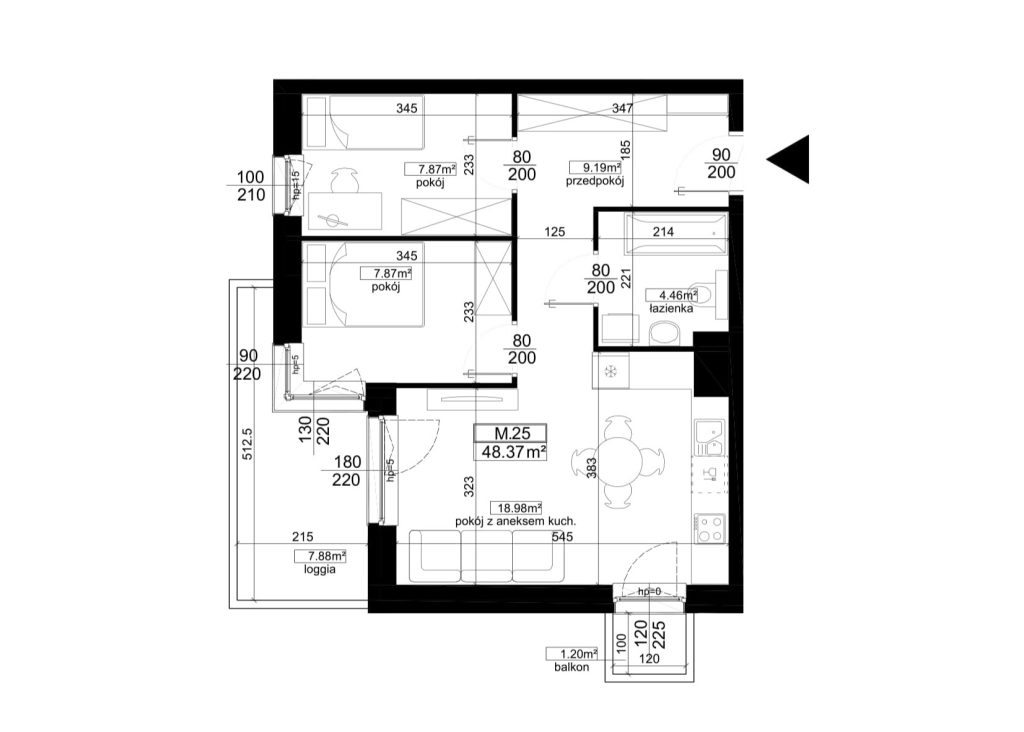 POKOI: 2 PIĘTRO: 3 LOGGIA: 7,87m2