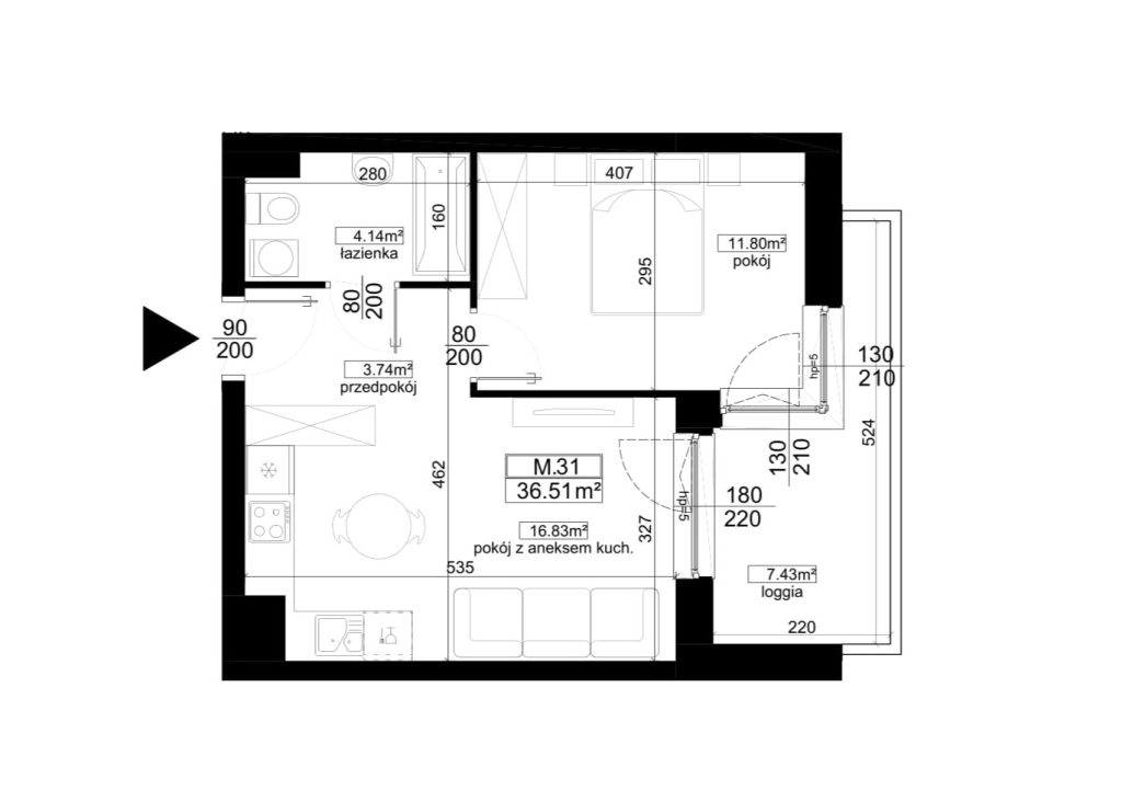 POKOI: 2 PIĘTRO: 1 LOGGIA: 7,43m2