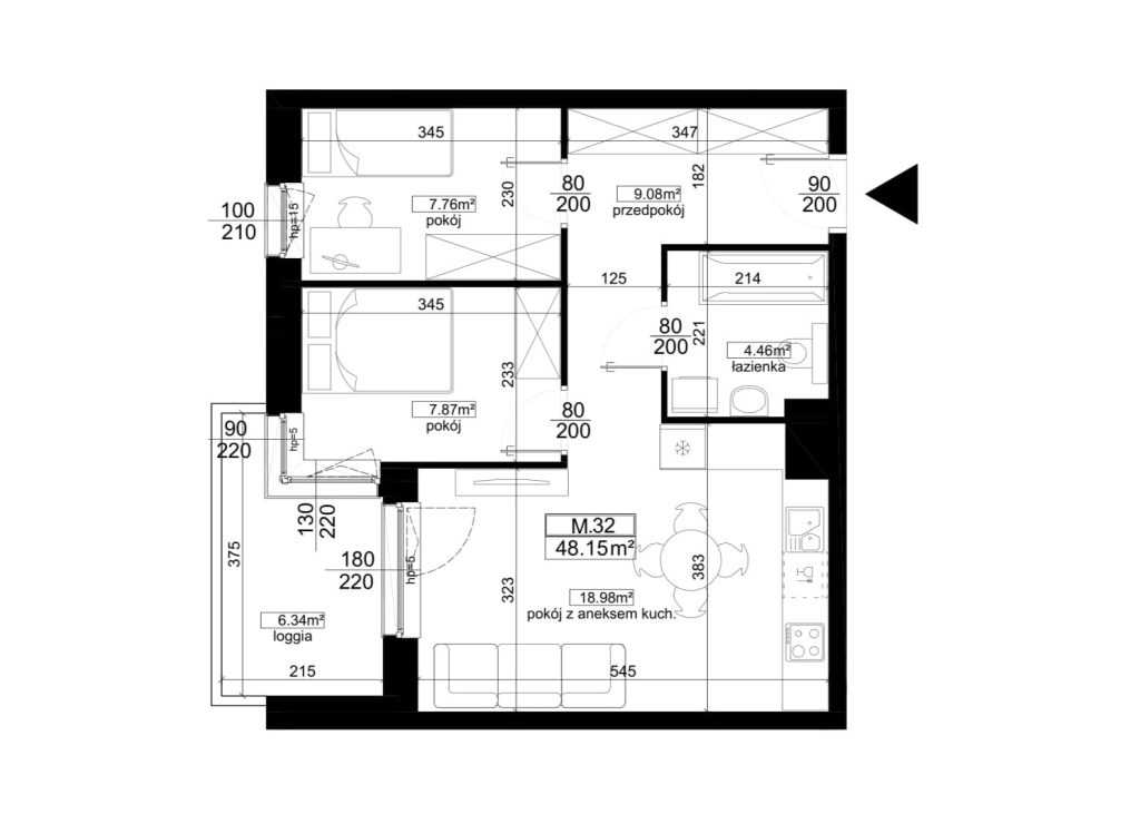POKOI: 2 PIĘTRO: 2 LOGGIA: 7,43m2