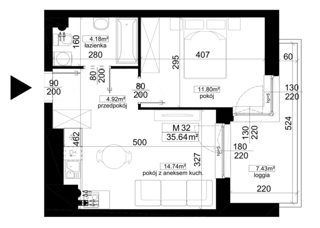 POKOI: 2 PIĘTRO: 1 BALKON: 11,30m2