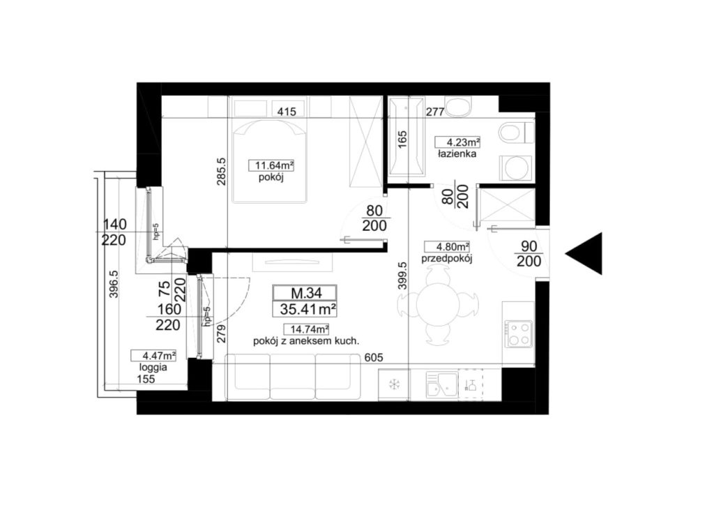 Pokój z aneksem kuchennym
