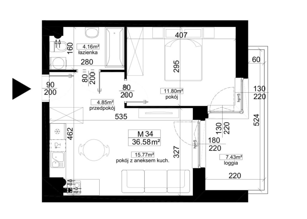Pokój z aneksem kuchennym