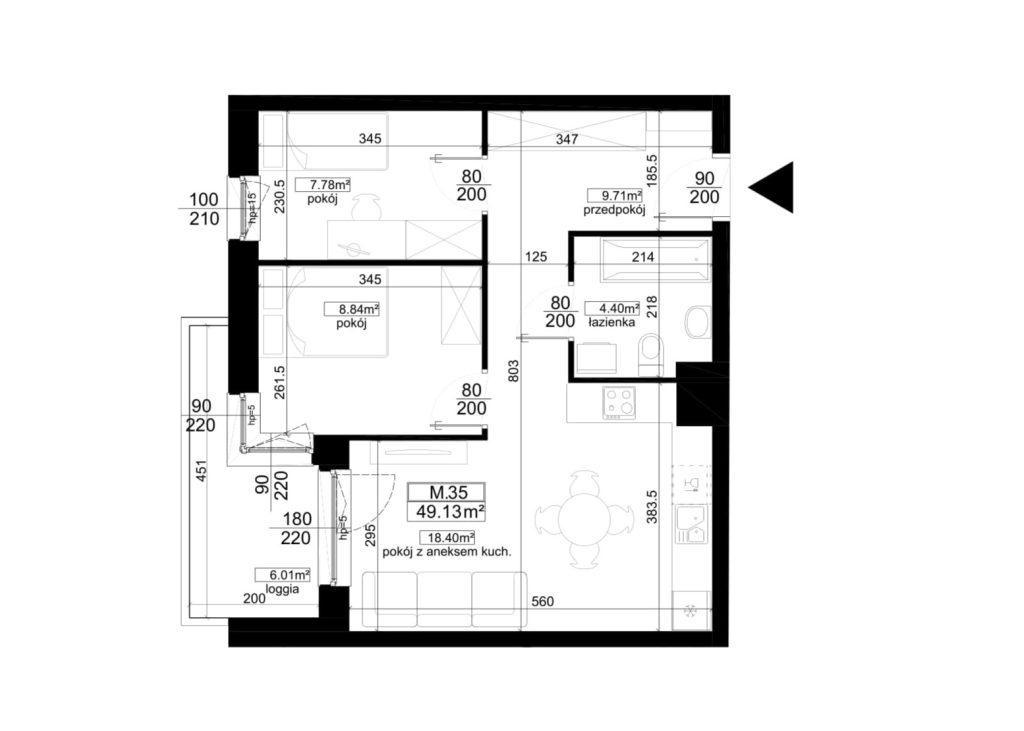 POKOI: 3 PIĘTRO: 1 LOGGIA: 7,35m2