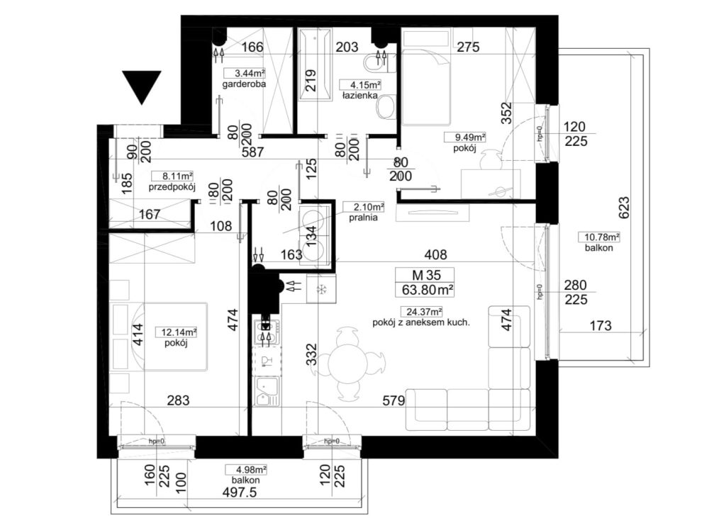 Pokój z aneksem kuchennym