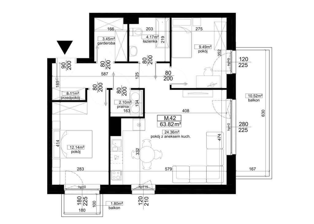 POKOI: 3 PIĘTRO: 1 BALKON: 3,91m2