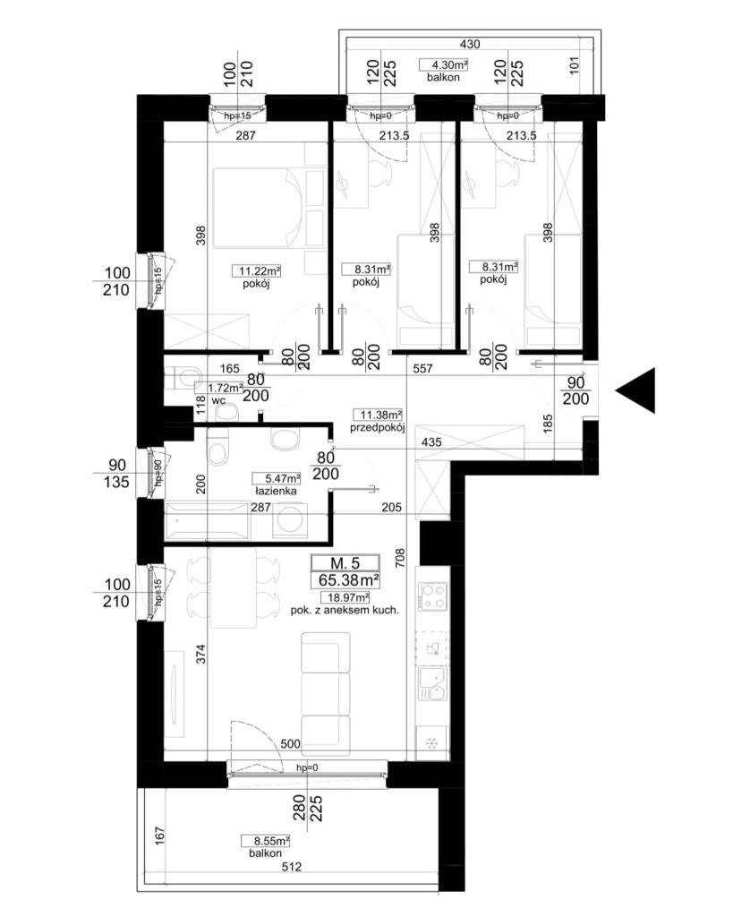 POKOI: 4 PIĘTRO: 2 BALKON: 12,40m2