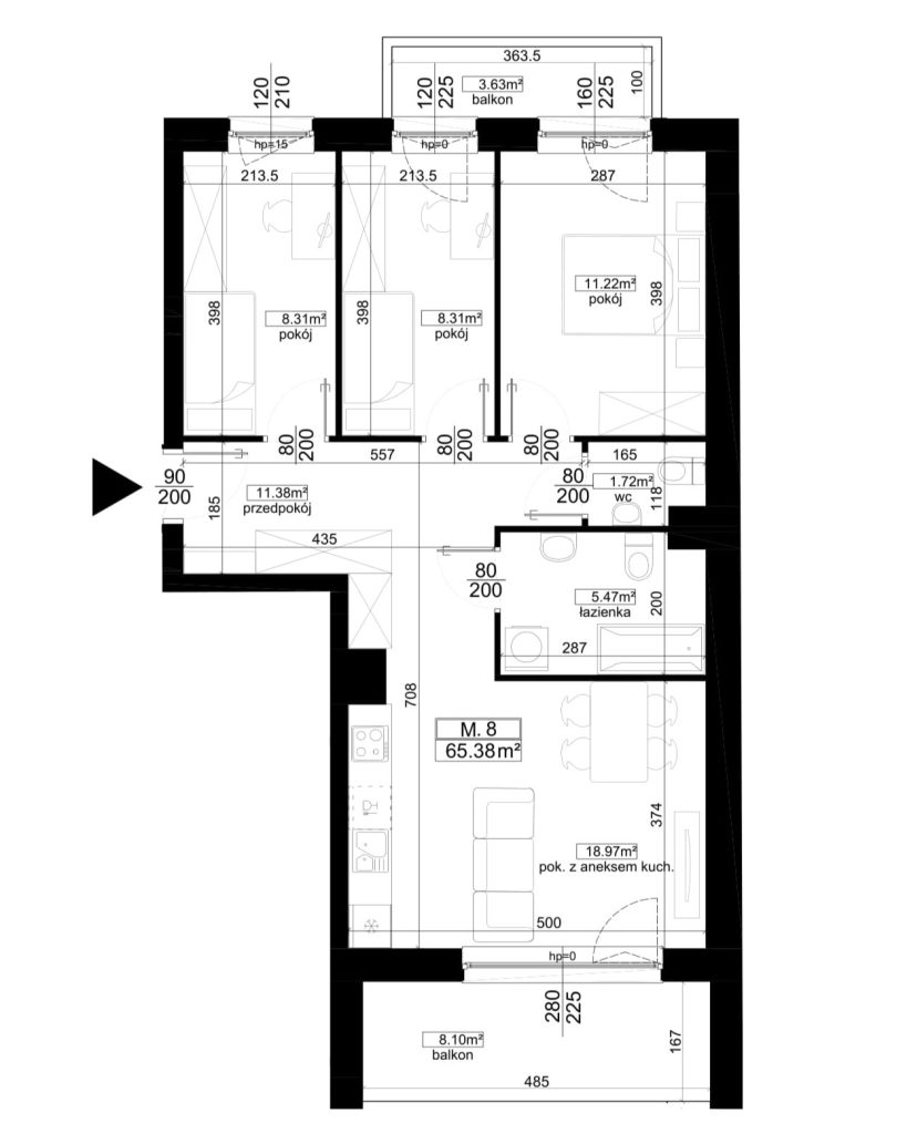 POKOI: 3 PIĘTRO: 1 BALKON: 8,40m2